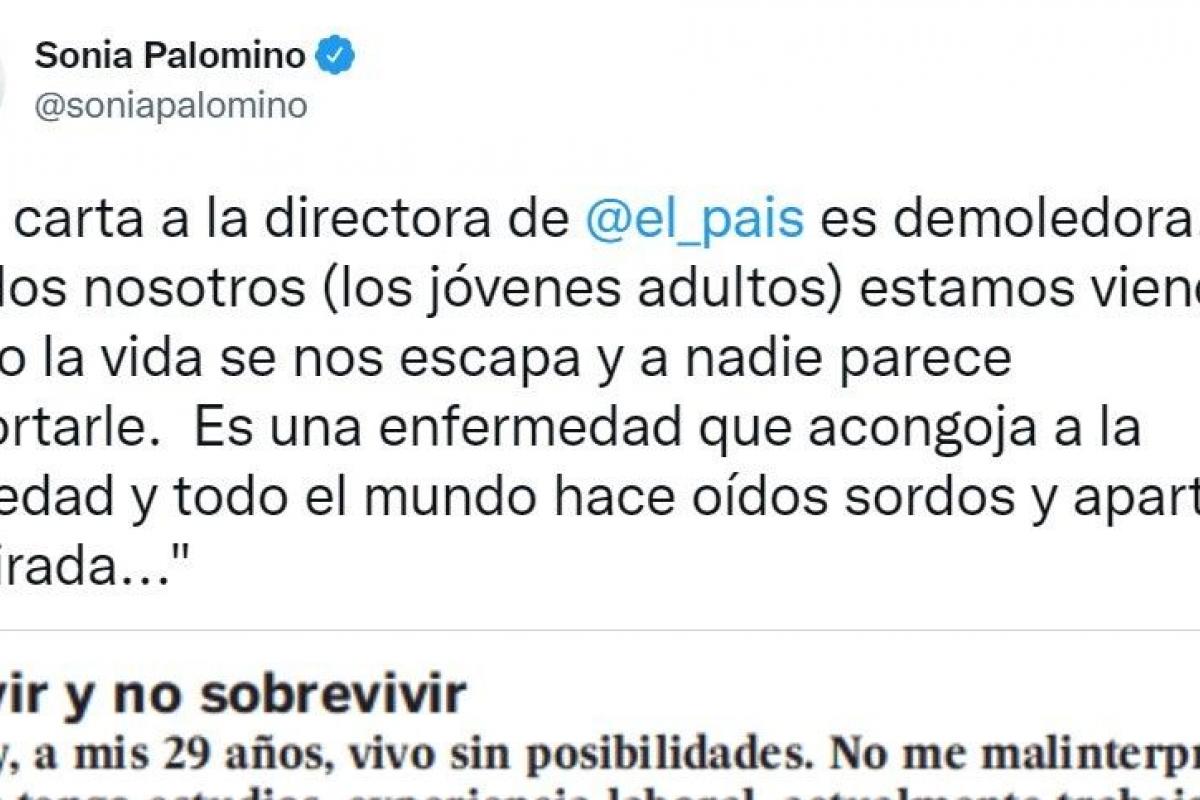 Fernández, que ha compartido su reflexión en una carta la directora de El País, afirma que con 29 años vive “sin posibilidades”. “No me malinterpreten: tengo estudios, experiencia laboral, actualmente trabajo (aunque no llego ni para vivir sola ni alquilar una habitación), pero mis posibilidades de vivir son nulas”, explica.