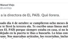 Esta carta a la directora de El País la ha compartido en Twitter la periodista de la Cadena Ser Sonia Palomino y se ha hecho viral con más de 3.500 me gusta.