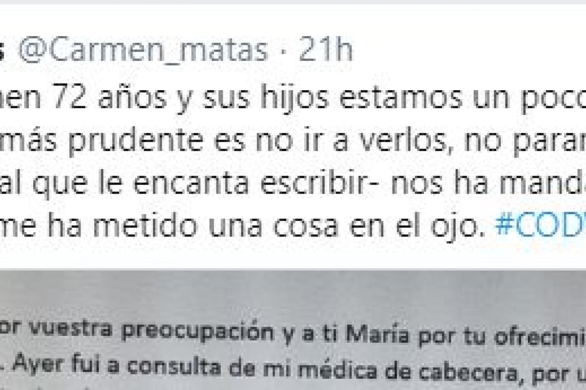 La joven periodista Carmen Matas ha contado en Twitter que ella y sus hermanos no están yendo a ver a sus padres. Para contestarles y calmarles, su padre ha escrito la siguiente carta, que se ha hecho viral, especialmente gracias a un final tan inesperado como maravilloso.