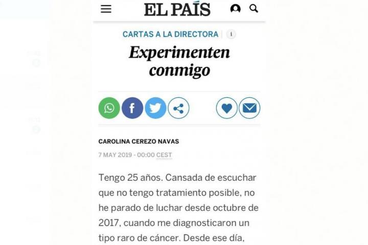 Una joven que sufre cáncer emociona en las redes sociales con esta carta a la directora de 'El País'