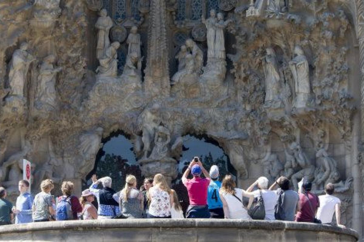 Un grupo de turistas visita el templo de la Sagrada Familia en Barcelona, la pasada Semana Santa.EFE