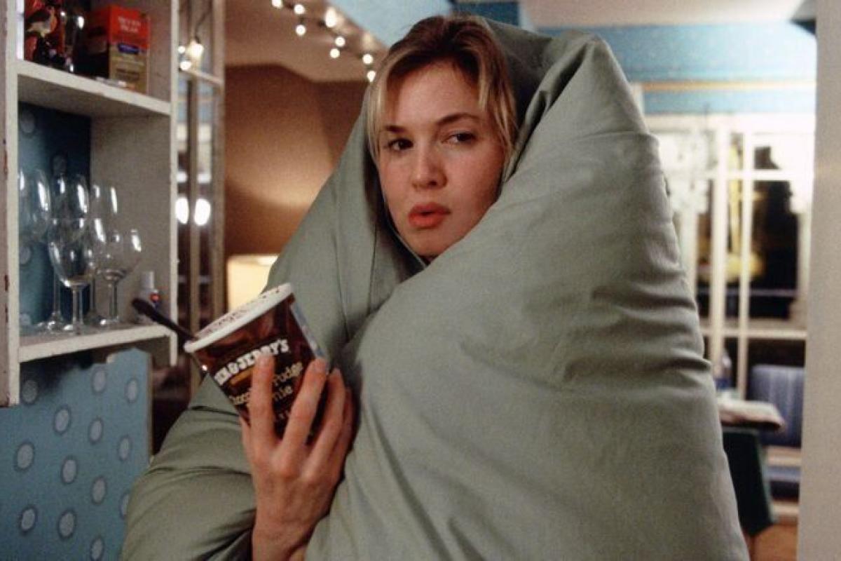 Sandra Bullock satirizó esa idea en Miss agente especial en el año 2000 y llevó el tópico del “ponme otra” a otro nivel. En cuanto se sienta en el bar, hecha polvo, el camarero le sirve una tarrina enorme de helado con sabor a galletas con pepitas de chocolate. “Me voy a pillar una buena”, bromea.