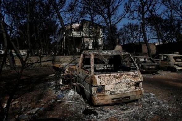 Coches quemados cerca de Mati, en los alrededores de Atenas.