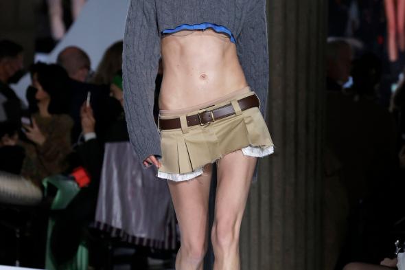 En octubre Miu Miu subió a la pasarela parisina las minifaldas de cintura baja que traumatizaron a varias generaciones en los 2000, y Lyst confirma que esta primavera volverán a nuestros armarios. El tiro de los pantalones seguirá bajando como en los últimos meses y la búsqueda de esta prenda en Internet ha crecido un 58% en el último año.
