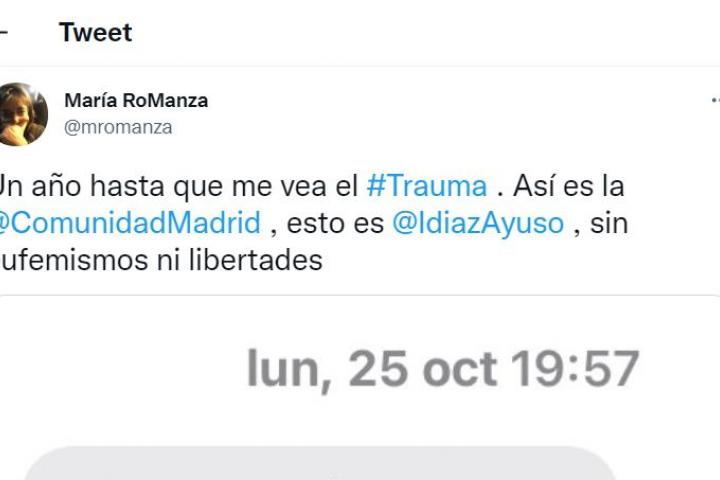 Este ha sido el caso de María Rodríguez-Manzaneque, residente de la Comunidad de Madrid que decidió compartir su caso en Twitter. María tiene un dolor en la rodilla que se le reproduce por toda la pierna por un problema de higiene postural, de forma que no puede utilizar la articulación con normalidad.