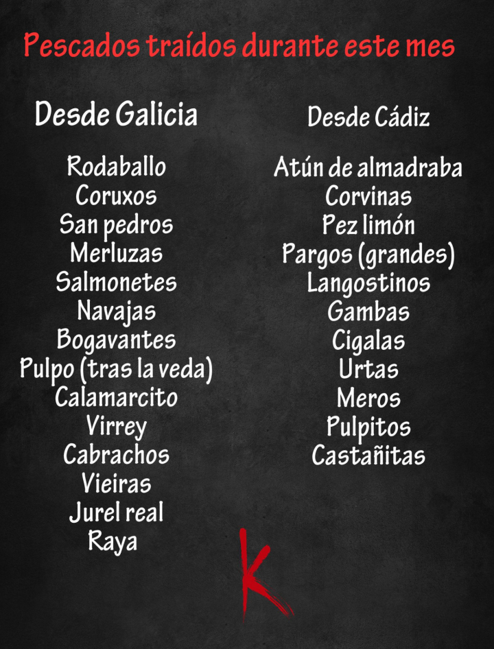 Durante las charlas con las lonjas gaditanas, entendimos que las corvinas recién entradas a puerto, pese a su inmejorable frescura, no alcanzaban la calidad necesaria, al proceder de aguas cálidas cerca de la superficie, en lugar de los ambientes fríos de la profundidad. Esta circunstancia afecta a la cantidad de grasa en la carne del pescado y por tanto a su sabor final. En en esas conversaciones, nos revelaron qué lleva al chicharro amarillo a asomarse a la costa andaluza estos días. Alcanzamos a entender el color rojo del lomo del atún. Evaluamos el sabor profundo a mar de las urtas. Y, analizar la jugosidad de los meros, nos llevó a variar su receta.