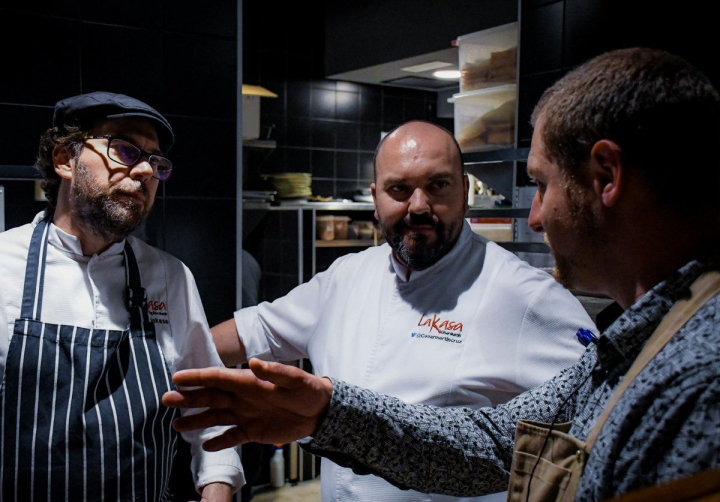 Cúmulos de historias que bien podrían quedarse aquí, en anécdotas curiosas e interesantes, y ya valdrían la pena. Sin embargo, un hecho lo cambia todo de manera radical: la libertad, en mayúsculas, que en Lakasa ejercemos para traer esos ingredientes. Esta inquebrantable voluntad hace, por ejemplo, que cocines unos garrafones con carabineros y te entre la euforia; que metas el filo del cuchillo para limpiar la carne prieta y brillante del jurel real y sigas con el subidón; el buen rollo se instala definitivamente al hincarle el diente a la ventresca de atún con trufa de verano o al corzo con jugo de cerezas.