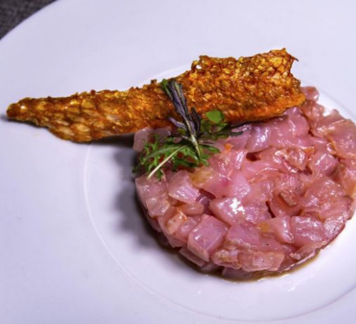 Desde la vertiente gallega, además de cantar las excelencias del rodaballo, de la raya y de la merluza de la pesca de bajura que llegan estos días, queremos aclarar la decisión, que tanta sorpresa ha causado, de elaborar el salmonete en crudo, a modo de tartar. Estos salmonetes son de roca. A diferencia de los de fango, viven a poca profundidad, cerca de las paredes de la costa, en aguas limpias, donde se alimentan de mariscos y algas fundamentalmente. A nivel visual, se diferencian en el color, con unos pigmentos rojizos muy vivos que en el caso de los de fango son mucho más apagados. Para el paladar, probar esta receta de tartar es como la buena música para los oídos. Aquí las notas, en lugar de agudas o graves, son salinas y vegetales. Su envolvente jugosidad nada tiene que ver con las variantes de este pescado una vez cocinado.
