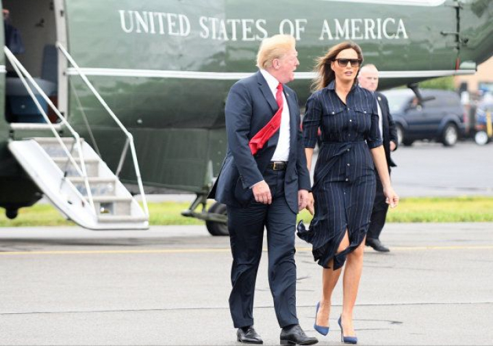 Hace tan solo unos días, el 22 de julio, la primera dama de Estados Unidos se subió al Air Force One junto a su marido, Donald Trump, con otro vestido vaquero. El diseño, de Polo Ralph, en realidad es de seda pero tiene apariencia denim.