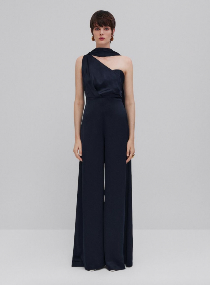 El negro es uno de los protagonistas de la propuesta de Studio, con opciones para todos los gustos. Algunas de las opciones ganadoras son un vestido largo con acabado georgette y drapeados o un mono asimétrico de pata ancha y con lazada que es una de las prendas más sofisticadas de la colección.