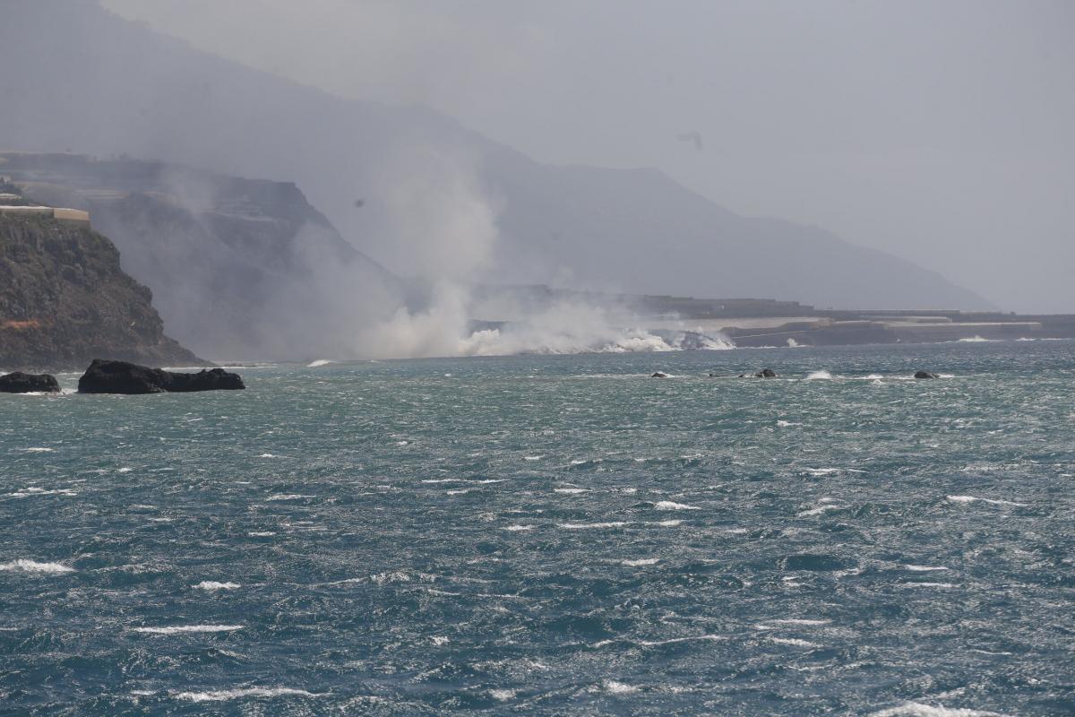 La columna de vapor de agua y gases posiblemente tóxicos generada al llegar al mar la lava del volcán durante la medianoche de este martes se mantiene retenida en el mar, sin que haya ningún tipo de afección entre la población de La Palma.