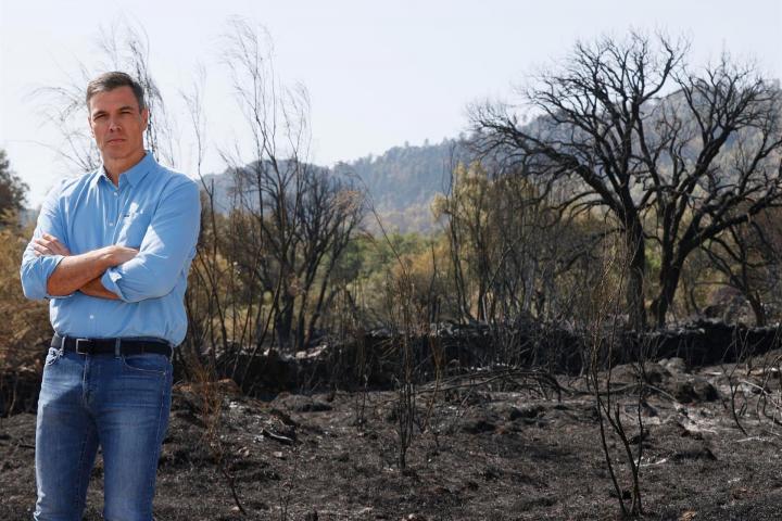 Es la imagen más comentada del Presidente del Gobierno en las últimas horas. La foto tomada por EFE en el Puesto de Mando Avanzado en el Puerto de Miravete, en la zona calcinada por el incendio que afecta al parque Nacional de Monfragüe, ha sido criticada por ciertos sectores de la derecha, que han acusado a Pedro Sánchez de “posar” ante los incendios que arrasan España.