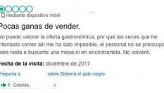 La comentada respuesta de una sidrería de Gijón a este comentario: "Estás completamente equivocada"
