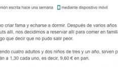 El comentario provocó que los dueños del restaurante respondieran explicando su versión de los hechos.