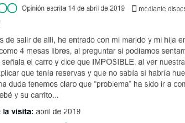 “Pero sin ninguna duda tenemos claro que ‘problema’ ha sido ir a comer con nuestro bebé y su carrito...”, añade.