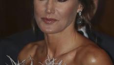 Letizia se soltó la melena con un Felipe Varela con pedrería y chaqueta blanca a juego.