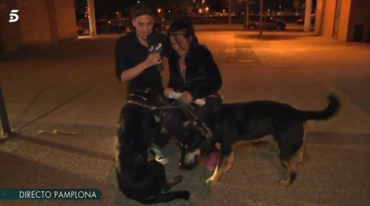 Mayte Galdeano bajó a la calle para atender al periodista con sus dos perros, que acapararon todo el protagonismo.