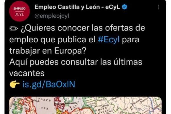 La cuenta de Twitter de Empleo Castilla y León, consejería que depende de Vox, ha tenido que borrar un tuit con unas ofertas de empleo para trabajar en Europa después de que se haya formado un importante revuelo por el mapa que han usado.