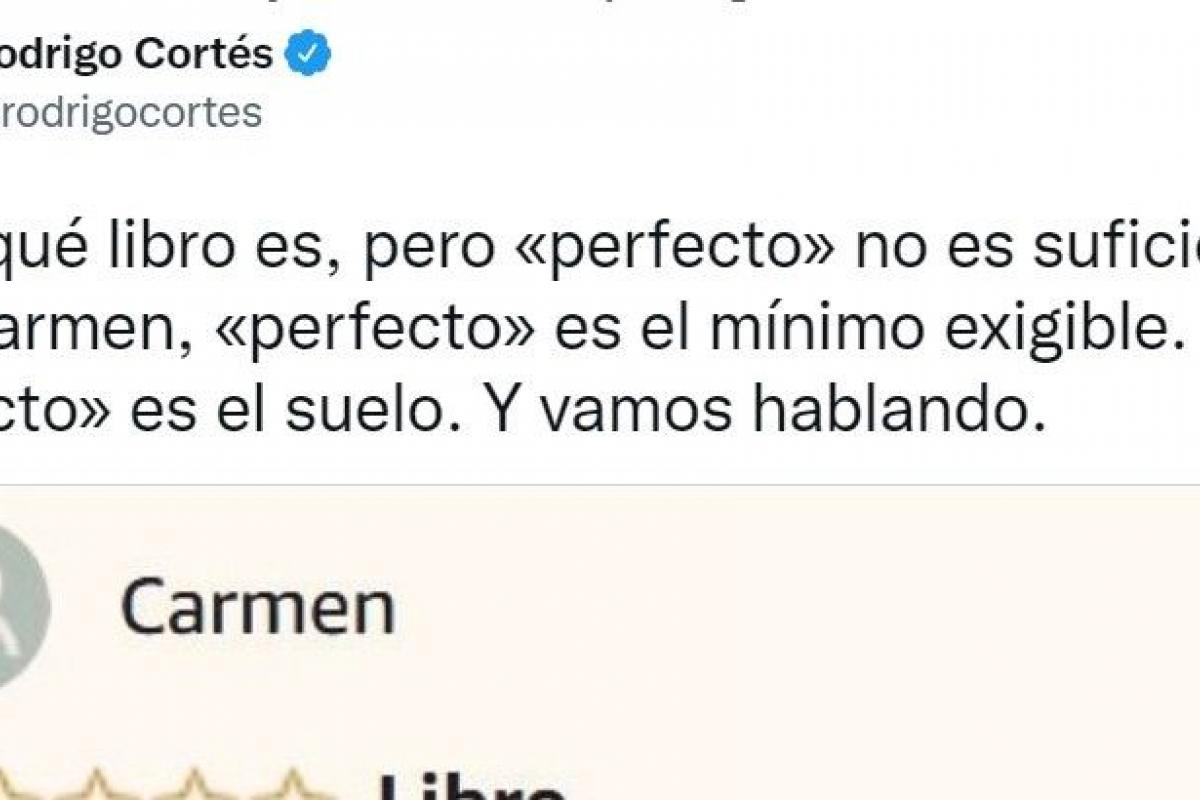 Este lunes, el guionista y director Rodrigo Cortés ha difundido el comentario que hizo una lectora llamada Carmen a un libro que había leído.