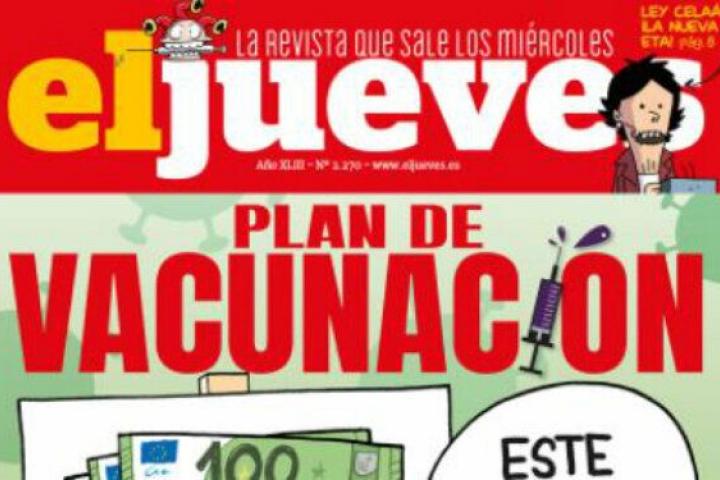 La revista satírica El Jueves ha centrado su portada de esta semana precisamente en el plan de vacunación. Y esa primera plana ha generado un amplio debate con fuertes críticas en las redes sociales.