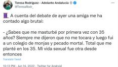 “Pero si me dijiste el otro día que posiblemente ibas a votar a Teresa Rodríguez”, replica él, que provoca la afirmación de su interlocutor: “Eso”.