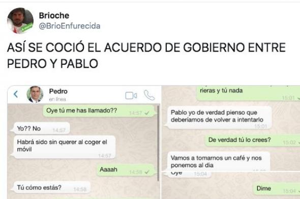 Pero, ¿cómo iniciaron la conversación Sánchez e Iglesias? Es difícil de saber, pero en Twitter hay una conversación ficticia de WhatsApp que imagina cómo pudo ser.