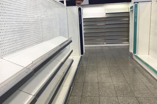 Los estantes de los supermercados están prácticamente vacíos.