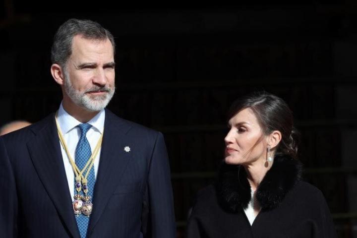 Letizia se soltó la melena con un Felipe Varela con pedrería y chaqueta blanca a juego.