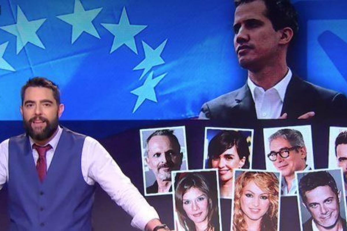 Así, repasando los famosos que apoyan a Guaidó, a Mateo le salen, así de primeras, Miguel Bosé, Paz Vega, Boris Izaguirre, Luis Fonsi, Ivonne Reyes, Paulina Rubio y Alejandro Sanz: "A Guaidó sólo le falta el apoyo de Raphael para montar una gala de fin de año", ha ironizado Mateo, que no obstante ha matizado que el mayor apoyo es el de Alejandro Sanz, que el miércoles habló con Guaidó en su Instagram donde cuenta con 4 millones de seguidores.