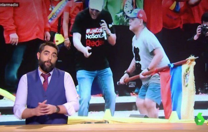 En este punto, Mateo ha resaltado que Maduro no debe preocuparse porque todavía cuenta con un amigo...: "¿Un amigo? Diego Armando Maradona. Sí, es uno, aunque parezca varios. Y es dios", ha destacado el colaborador de El Intermedio.