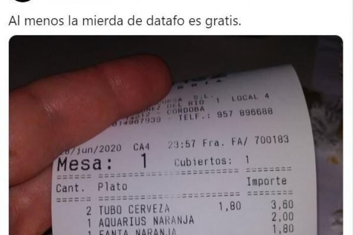 Pero el usuario de Twitter @MoloEnsecreto ha publicado en esa red social la foto de una factura de un bar de Córdoba que ha dejado una simpática anécdota. Y lo más importante: gratis.