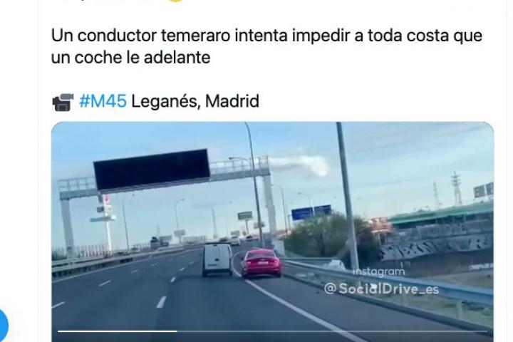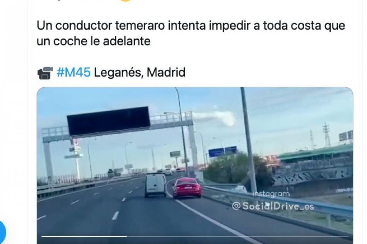 La imagen la ha compartido la cuenta de Twitter @SocialDrive_es y en ella se observa cómo la furgoneta blanca intenta impedir por todos los medios que el vehículo rojo le adelante.