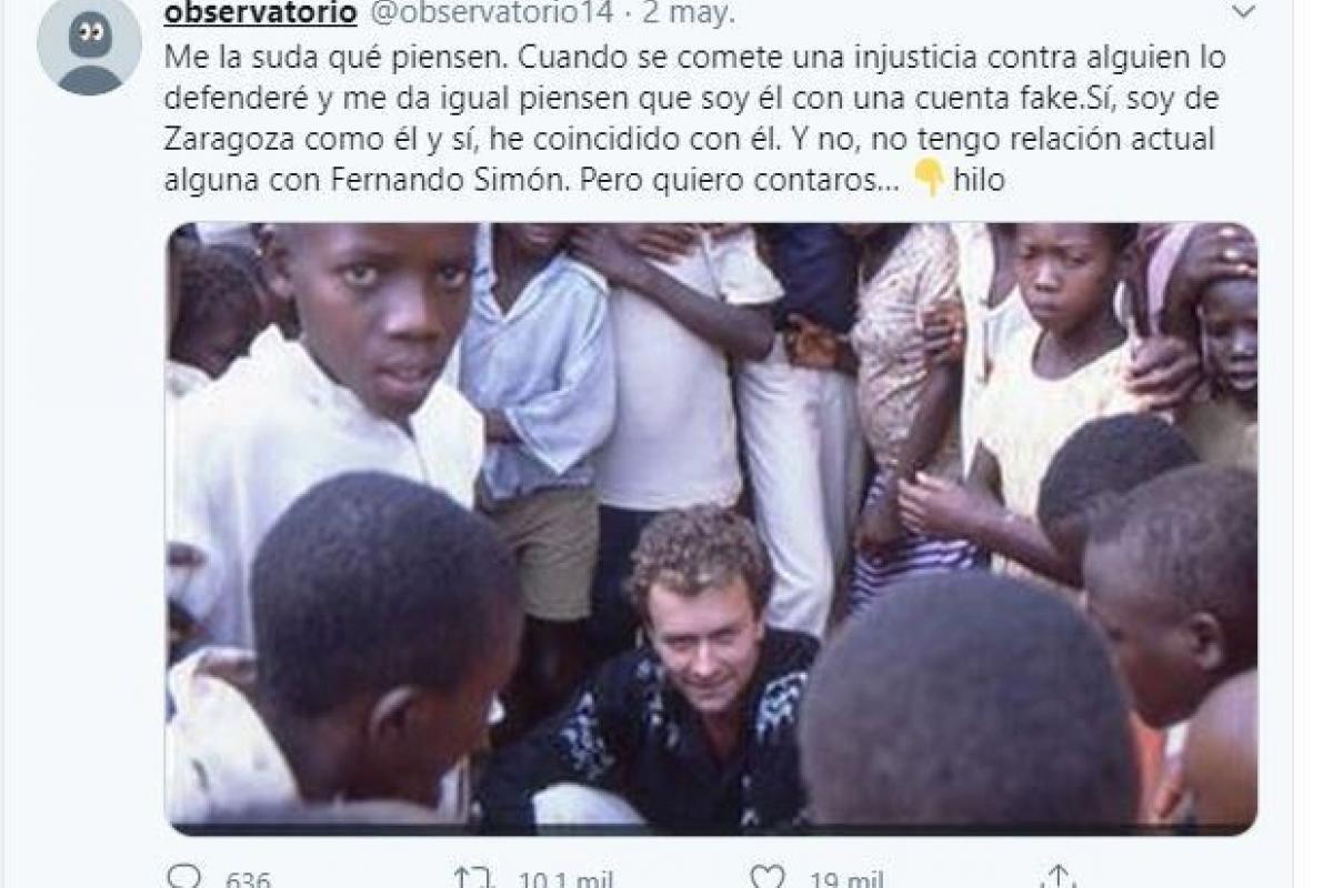 Me la suda qué piensen. Cuando se comete una injusticia contra alguien lo defenderé y me da igual piensen que soy él con una cuenta fake.Sí, soy de Zaragoza como él y sí, he coincidido con él. Y no, no tengo relación actual alguna con Fernando Simón. Pero quiero contaros… 👇hilo pic.twitter.com/9XMjdUB50d