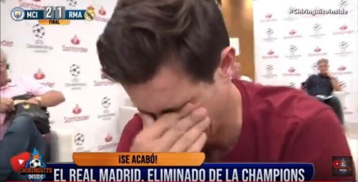 La desolación del periodista contrasta con la euforia de Cristóbal Soria, su compañero en El Chiringuito, que en Twitter se ha mostrado encantado por la eliminación del Madrid.