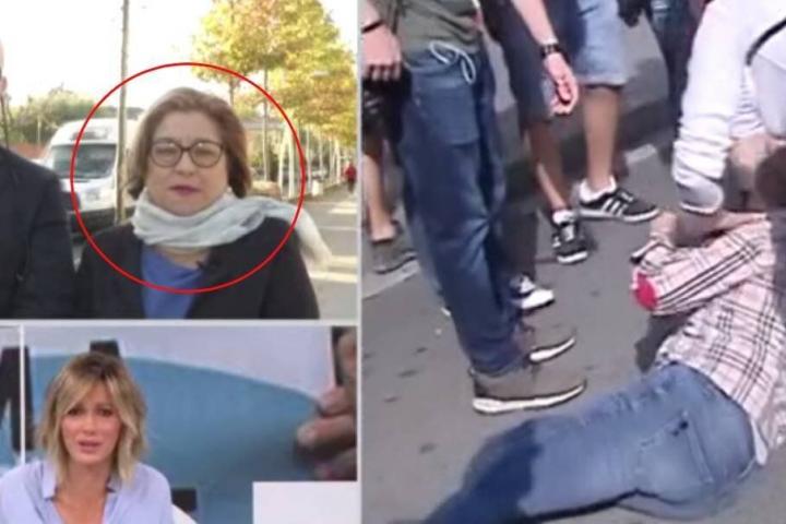En ese momento, un individuo independentista arrebata la bandera española a la mujer y la agrede con extrema violencia con su brazo derecho, lo que tira a Grima contra el suelo, donde se queda tendida.