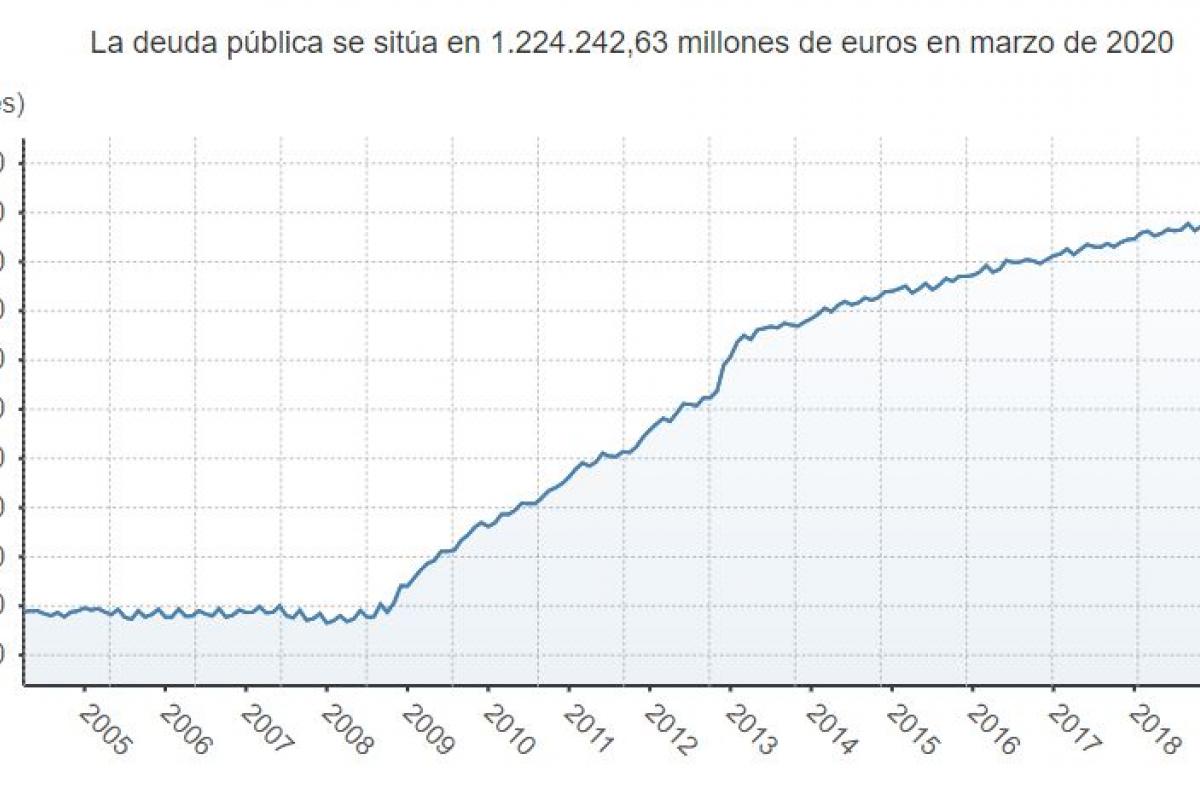 La deuda del conjunto de las administraciones públicas registró en marzo un incremento del 1,9% respecto al mes anterior al sumar 22.473 millones de euros como consecuencia de la crisis del Covid-19, hasta el máximo histórico de 1.224.243 millones de euros, y se situó en el entorno del 98% del PIB, según los datos publicados este martes por el Banco de España.