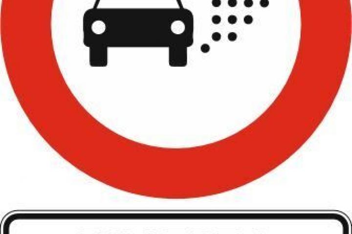 La señal en cuestión es una similar a la de prohibido el paso, pero dentro del círculo hay un coche y unos puntos negros. Esta sirve para identificar las zonas de bajas emisiones existentes en las grandes ciudades para promover la movilidad sostenible y saludable.