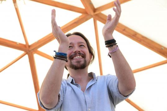 El líder de Podemos, Pablo Iglesias, en el acto organizado por su partido en Santa Coloma de Gramenet.