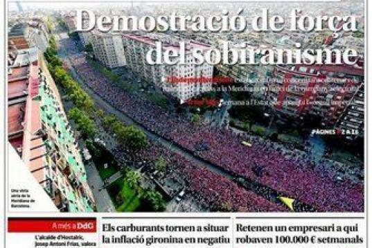 En 2016, cuando se descentralizó para convocarse en varias ciudades catalanas, la manifestación de la Diada reunió a 875.000 personas, por debajo de los 1,4 millones de 2015 y del récord alcanzado en 2014, con 1,8 millones de asistentes, según los cálculos de la Guardia Urbana de Barcelona.