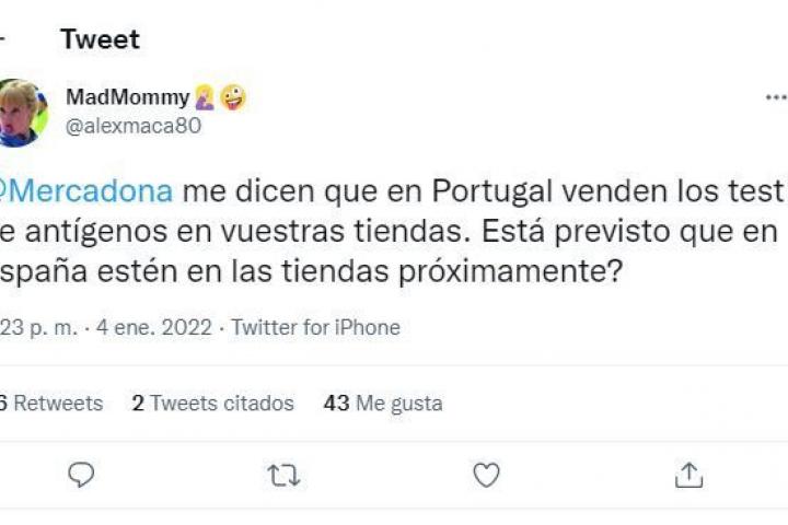 “Me dicen que en Portugal venden los test de antígenos en vuestras tiendas. ¿Está previsto que en España estén en las tiendas próximamente?”, ha querido saber el cliente.
