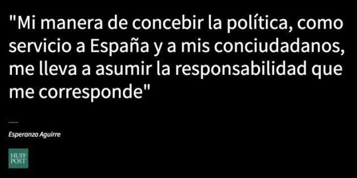 Se acabó. Esperanza Aguirre ha dicho adiós al ayuntamiento de Madrid cercada por los casos de corrupción. En la cárcel están sus 'número dos' en la Comunidad y en el PP, Ignacio González y Francisco Granados, respectivamente. No ha podido aguantar más. La presión era máxima.