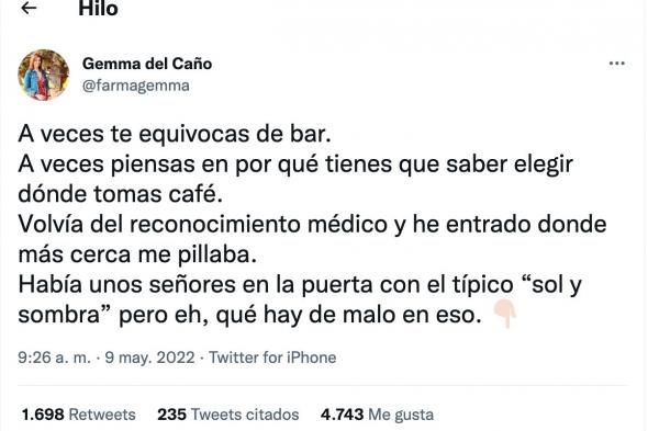 “A veces te equivocas de bar. A veces piensas en por qué tienes que saber elegir dónde tomas café. Volvía del reconocimiento médico y he entrado donde más cerca me pillaba. Había unos señores en la puerta con el típico “sol y sombra” pero eh, qué hay de malo en eso”, ha empezado diciendo.