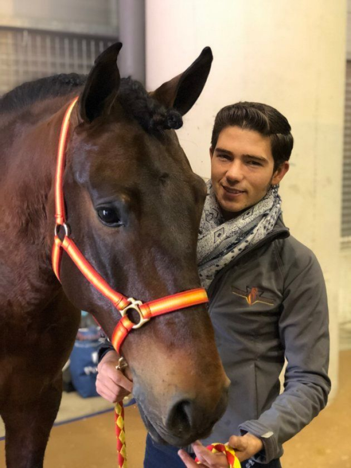 Hay que tener suerte para dar justo con la persona adecuada en el momento mas oportuno. En la Scuderia, fui abriendo cortina por cortina en búsqueda de un ejemplar de pura raza española, conforme fui recorriendo los pasillos me iba desilusionando, había caballos preciosos pero no PRE, pero al final, cuando estaba a punto de desistir, apareció ya casi al final del recorrido, una bandera española al lado de un póster de la "Yeguada Poetalla" en donde decía: Doma Classica - Alta Scuola - Doma Vaquera- ¡lo había encontrado!