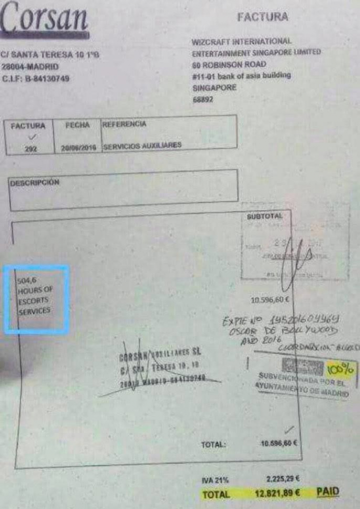 "504,6 hours of escorts services". Esta cifra junto a estas cuatro palabras en inglés, que aparecen en una factura referente a la entrega de los Premios de Bollywood que se celebró en Madrid —los Óscar del cine indio, celebrado en IFEMA hace un año y a los que el Ayuntamiento de Madrid dedicó un millón de euros—, que han aparecido en las cuentas del Gobierno regional, han provocado la indignación de la exdiputada del PP Irene Moreno.