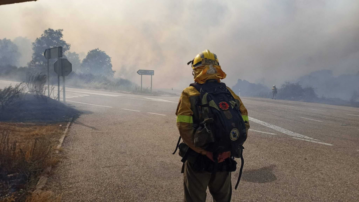 Los agentes se lo encontraron este sábado en una de las zonas ya apagadas de la sierra, próxima al municipio de Otero de Bodas. ”Íbamos caminando por una zona ya apagada y estaba justo al lado del cuerpo de la madre, que estaba muerta probablemente por inhalación de humo”, explica Jiménez, el capataz de esa brigada de bomberos.