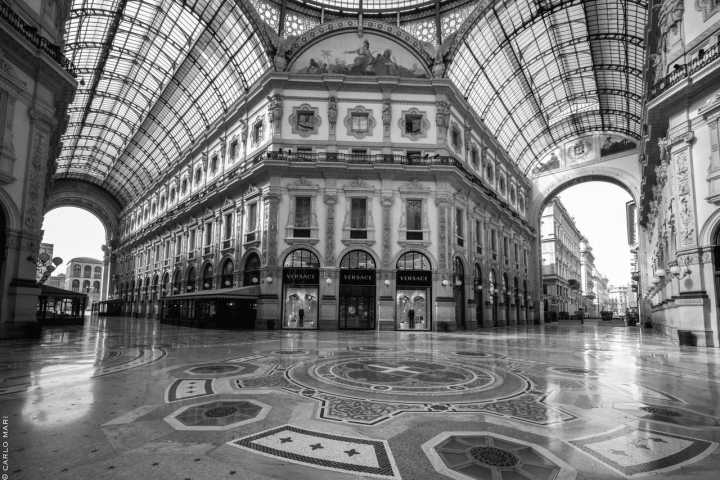 En la Gallerie d’Italia, la exposición Io Milano (Yo Milán), con las fotografías de Carlo Mari al inicio de la descripción de la muestra se lee: “ Un Milán metafísico y surrealista, un Milán desierto, sin tráfico ni personas, un Milán en donde reinaban los vacíos y el silencio, un Milán diferente, nunca vista, pero siempre bellísima”.