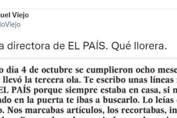 “Te escribo unas líneas melancólicas en El País porque siempre estaba en casa, si no lo habían dejado en la puerta te ibas a buscarlo. Lo leías con tu desayuno. Nos marcabas artículos, los recortabas, incluso los fotocopiabas”, comienza el texto.