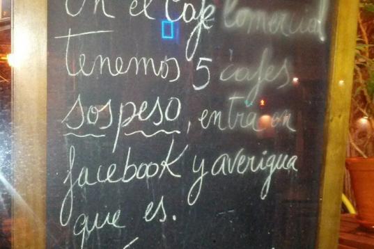 Ay, las buenas costumbres... Esta foto es del Café Comercial, de Madrid. "Se ha puesto en práctica una vieja costumbre napolitana: dejar pagado un café para que se lo tome quien venga detrás y no pueda costeárselo. Del mismo modo, Madame Gi...