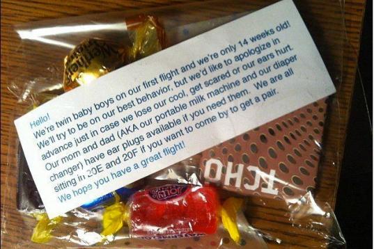 Los niños son adorables... Especialmente fuera de un avión. Este detallazo lo conocimos a través de The Daily Mail. Los padres de dos gemelos de 14 semanas ofrecieron al resto de pasajeros tapones para los oídos y dulces para pedir disculpa...