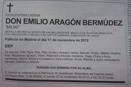 Cuando falleció Miliki, la familia pidió que se recordara a Emilio Aragón Bermúdez con una sonrisa. Pocas veces se ven gestos de celebración de la vida en las esquelas.